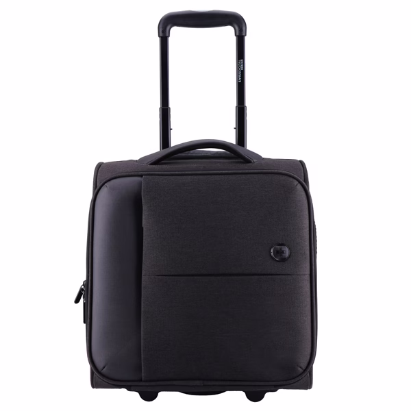 Trolley in poliestere prodotto con materiali robusti e durevoli. Ideale per viaggiare entra perfettamente nello spazio sotto il sedile degli aereo o treni. Tasca laterale portaoggetti e scomparto RFID interno per una maggiore protezione. Ampio scomparto interno per abiti e oggetti con cinture di fissaggio e scomparto interno perlaptop 15,6”. Dimensioni, comprese le ruote e il manico telescopico: 101 x 33,5 x 20, senza ruote e manico: 36 x 33,5 x 20cm, volume 21L, peso 2,1kg.