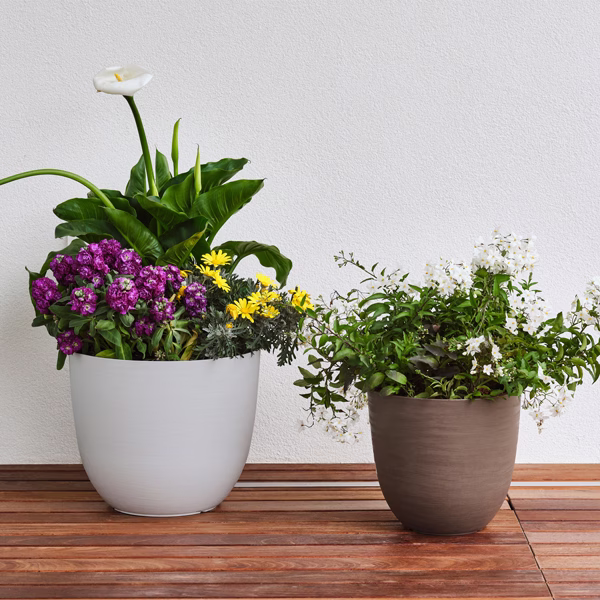 Vaso realizzato in plastica riciclata adatto ad ambienti interni e esterni. Dotato di serbatoio riserva d’acqua da 12lt Dimensioni: Ø58x h. 47cm. Si consiglia di pulire con una spugna bagnata con acqua e detergente liquido neutro.