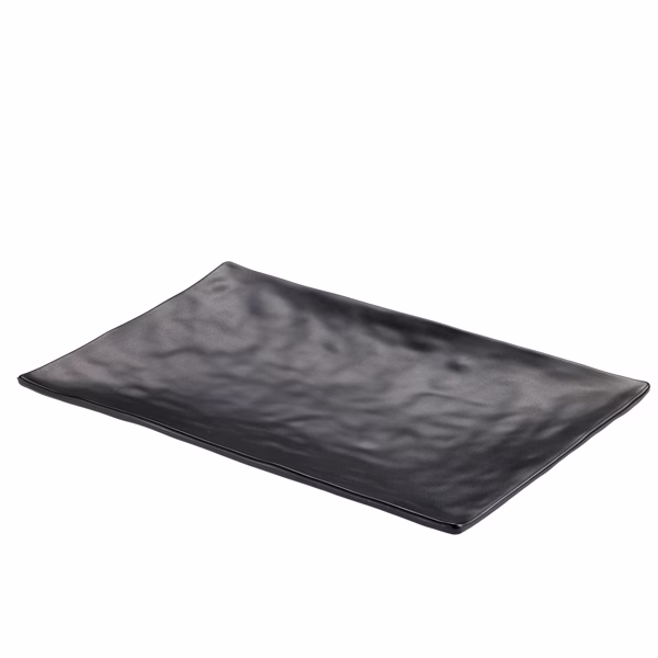 Vassoio rettangolare in melamina nera, 24×13,8×2 cm. Peso netto 265gr. Colore Nero. 100% Melamina, prodotto idoneo al contatto con tutti i tipi di alimenti (T max70°C). Articolo lavabile in lavastoviglie; Da non utilizzare con utensili taglienti. Prodotto da non utilizzare unitamente all’alimento nel forno tradizionale e forno a microonde; Conservare il prodotto in luogo asciutto,lontano dai raggi del sole e fonti di calore(0°C+35°C).