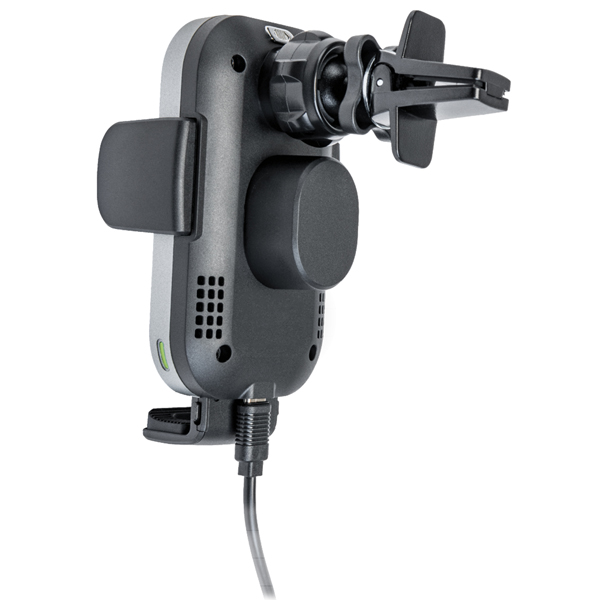Porta telefono a ricarica rapida di Verbatim che utilizza la tecnologia di ricarica wireless Qi ad alta velocita per fornire una ricarica sicura e veloce per il tuo Android o iPhone. Il supporto di ricarica di alta qualità consente di effettuare chiamate in vivavoce e di vedere comodamente le mappe GPS mentre si ricarica. Non appena si appoggia il telefono sul supporto, questo lo riconosce e chiude automaticamente i bracci laterali mantenendolo saldamente in posizione. Con una potenza di ricarica massima di 15W, può caricare anche attraverso custodie del telefono con uno spessore massimo di 4 mm.