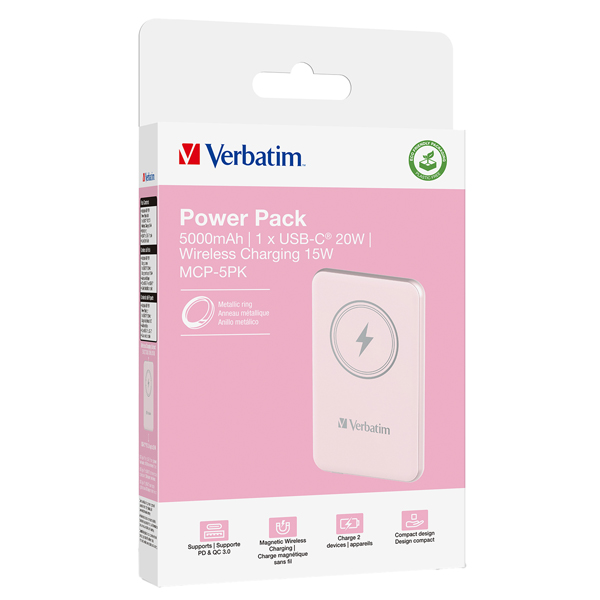 Verbatim – Power Bank Wireless – 5000 mAh – Rosa – 32243
